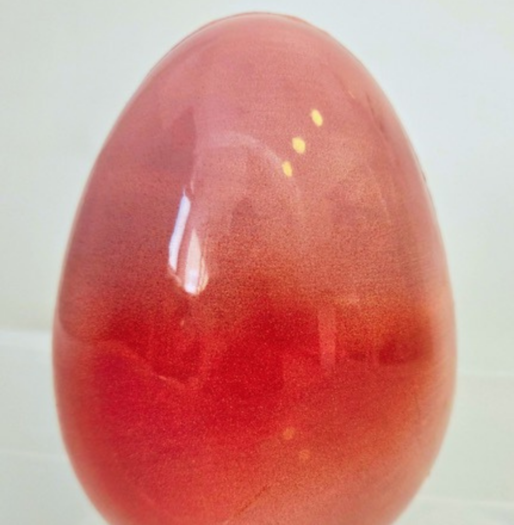 Jaje od belgijske mliječne čokolade i lješnjaka, punjeno domaćom giandujom od tostiranih lješnjaka, mliječne čokolade i hrskavih kukuruznih pahuljica.Intenzivan okus čokolade i lješnjaka uz hrskavu teksturu.
